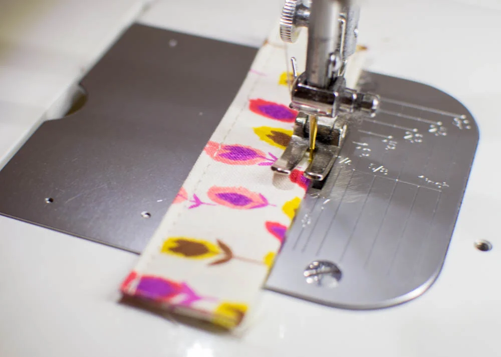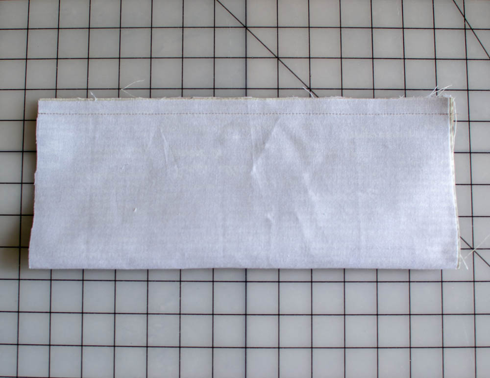 1. Press and topstitch the 4'' x 42'' strap piece the same way as the tab pieces.