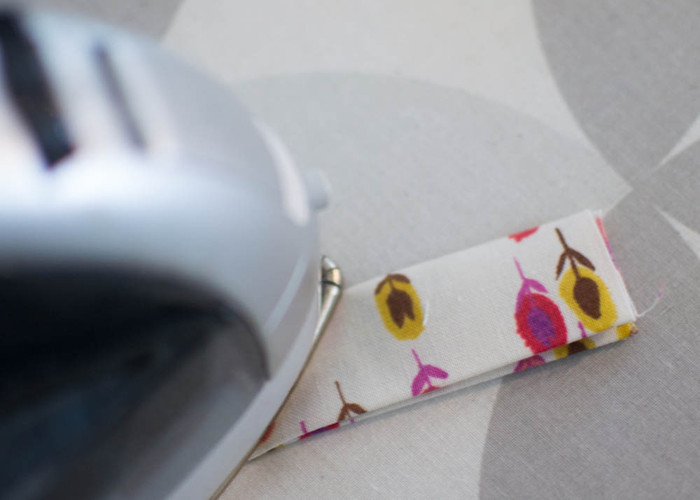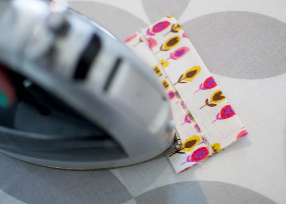 !. Press the tab pieces in half, and then press the edges to the center. Fold in half again and press.