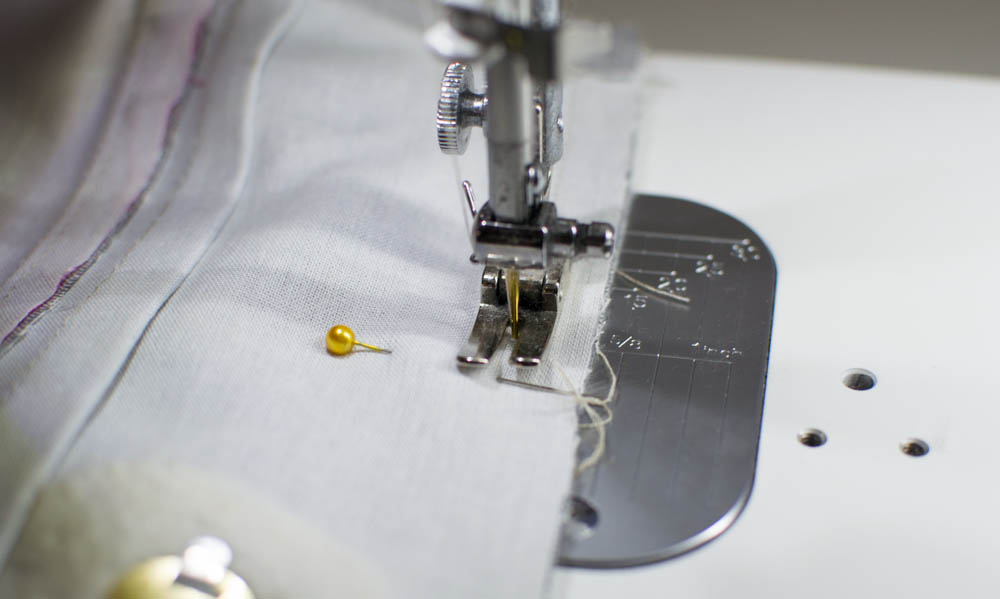 Stitch the pocket top and sides with a 1/4'' or 1/2'' seam allowance.