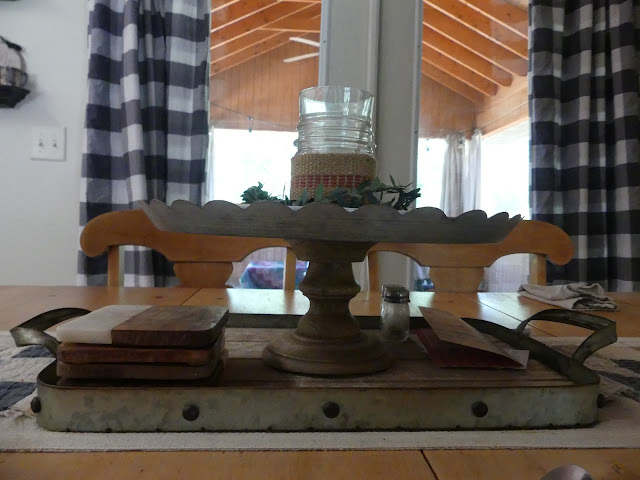 Next choose an item to set in the middle of your runner - I like to think differing textures here - something galvanized or wood perhaps? Again, shop your house for a cute basket, vintage canning jar, vase you love, or interesting piece that would look neat - anything goes, just keep in mind not to make it too tall so that your family can see across the table!