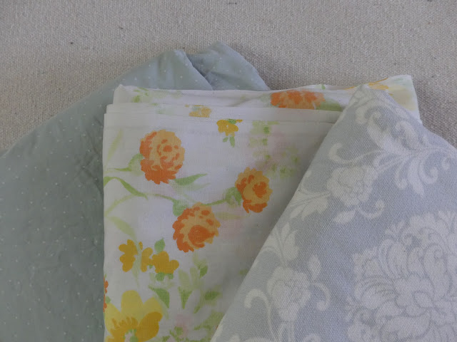 These (above) are what I found on quick look through my linens - the two on the left are sheets and the furthest to the right is a three-yard piece of fabric.