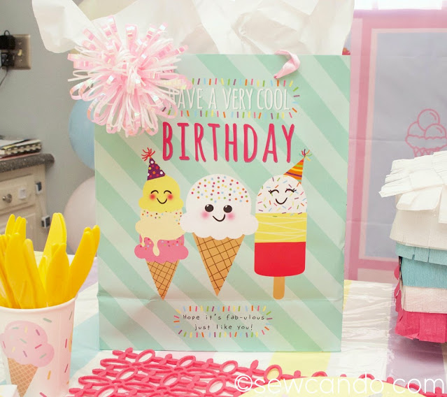 Fortunately I also had this cute ice cream-themed gift bag in my stash from a previous family birthday (saving party bags = win), to tie into our theme: