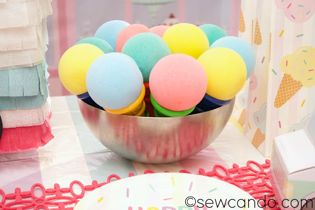 I got a pack of foam ice cream poppers to do double duty as party favors & decorations. These were a big hit with all ages: