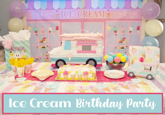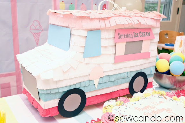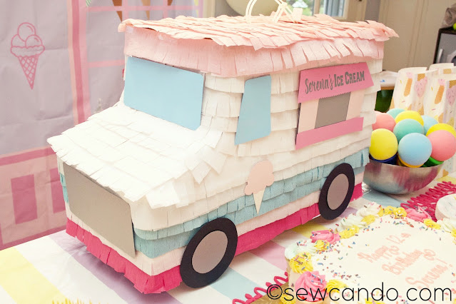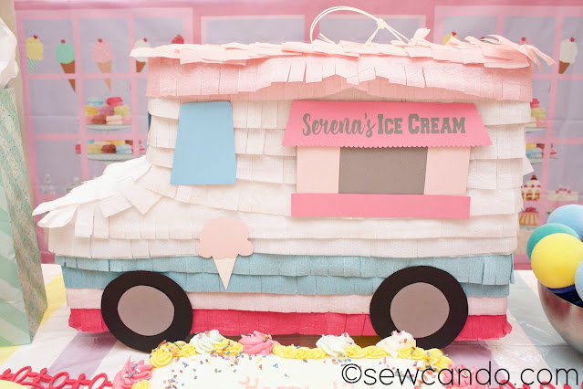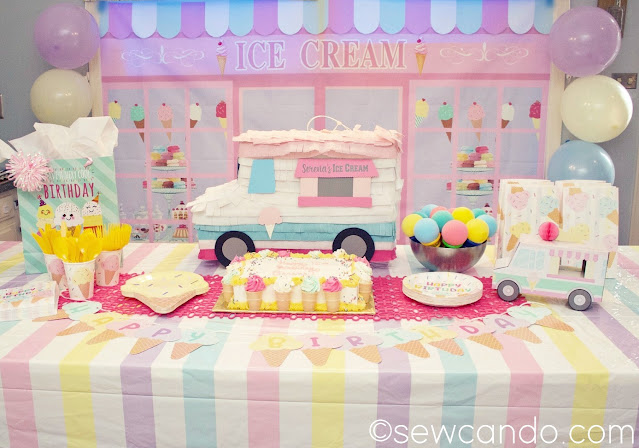 The paper set even came with balloons and some nice matching gift bags and I also bought this cute little cardboard ice cream truck centerpiece to add a little more decor fun: