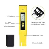 Earabella - Automatic temperature compensation the ph tester digital has builtin atc automatic temperature compensation the measurement data is more accurate with testing liquid can vary from 0c 60c 32f 140f Auto calibration the ph water tester has an auto temperature compensation feature that adjusts to water temperatures and water quality to give ph readings almost instantly As well you can calibrate the tester with one touch button using calibration buffer powder Family musthave and costeffective this ph meter is musthave product for your family health and most water test scenarios it is multifunction