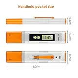 7Pros - Fast results convenient size it only takes a few seconds for your result to appear on screen Simply press on stir gently and the reading will stabilize on the display in moments This portable size instrument allows you to carry it around easily in your pocket and do your measuring anywhere Its special plastic case will protect it whether you take it to the pool on a trip to the beach camping or a picnic Easy measurement and accurate results no more time consuming paper strips or other inaccurate ph test chemicals our device is a digital ph tester which will allow you to test your liquid quickly and accurately within 001 ph no matter what your liquid is or whether you are a new or experienced user