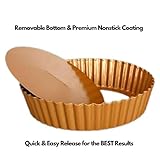CopperKitchen - absolutely no greasing or lining needed Do you want to bake cakes pies omelettes meatloafs pazookies quiches chicken pot pies tarts deepdish pizzas and all kinds of pastry hassle free This 3 piece copperkitchen nonstick removable bottom pie quiche and tart set will help you bake without any fuss Bake with confidence for the best results this 3 piece set with removable bottom with premium nonstick that is both inside and outside the pans offers a quick and easy release after baking This will give you the perfect results for your pies tarts and quiches or whatever you choose to cook up in your kitchen You do not need to worry about scrapping pans after baking anymore